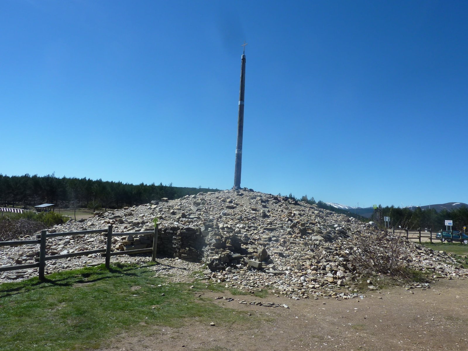 Het is eerder iets symbolisch. Velen laten hun steen achter aan de Cruz de Ferro of ijzeren kruis op de Camino Francés (zie foto onderaan). Maar je kunt de steen eigenlijk achterlaten waar het voor jou goed voelt om hem neer te leggen.